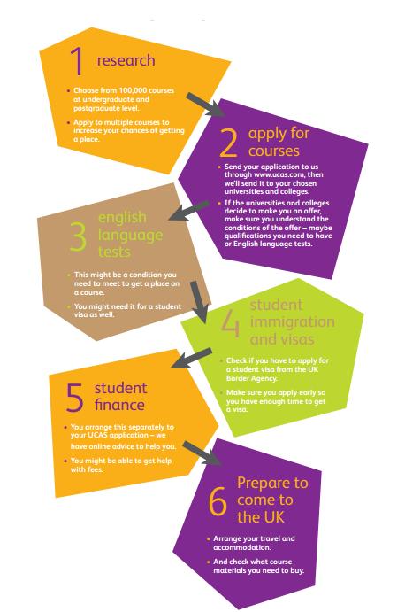 สำหรับการสมัครเข้าเรียนต่อปริญญาตรี นักเรียนต่างชาติที่เรียนอยู่ในประเทศอังกฤษ ระดับ A Levels, Foundation หรือ IB จะสมัครเข้ามหาวิทยาลัยผ่านทางระบบ UCAS โดยที่ทางโรงเรียนที่นักเรียนเรียนอยู่ จะเป็นผู้ช่วยในการแนะนำขั้นตอนการสมัครเรียน อย่างไรก็ตาม นักเรียนต่างชาติ อาจจะสามารถสมัครตรงกับทางมหาวิทยาลัยในรอบสองได้ด้วย